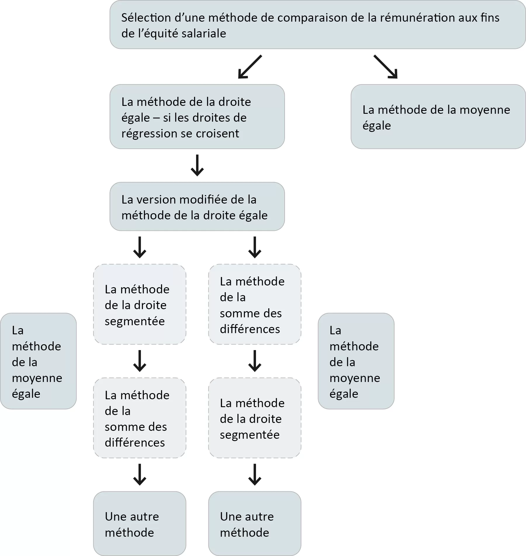 - Chaque bloc subséquent est la méthode suivante à essayer en cas d'échec (c.‑à‑d. ne pas atteindre l'équité salariale).