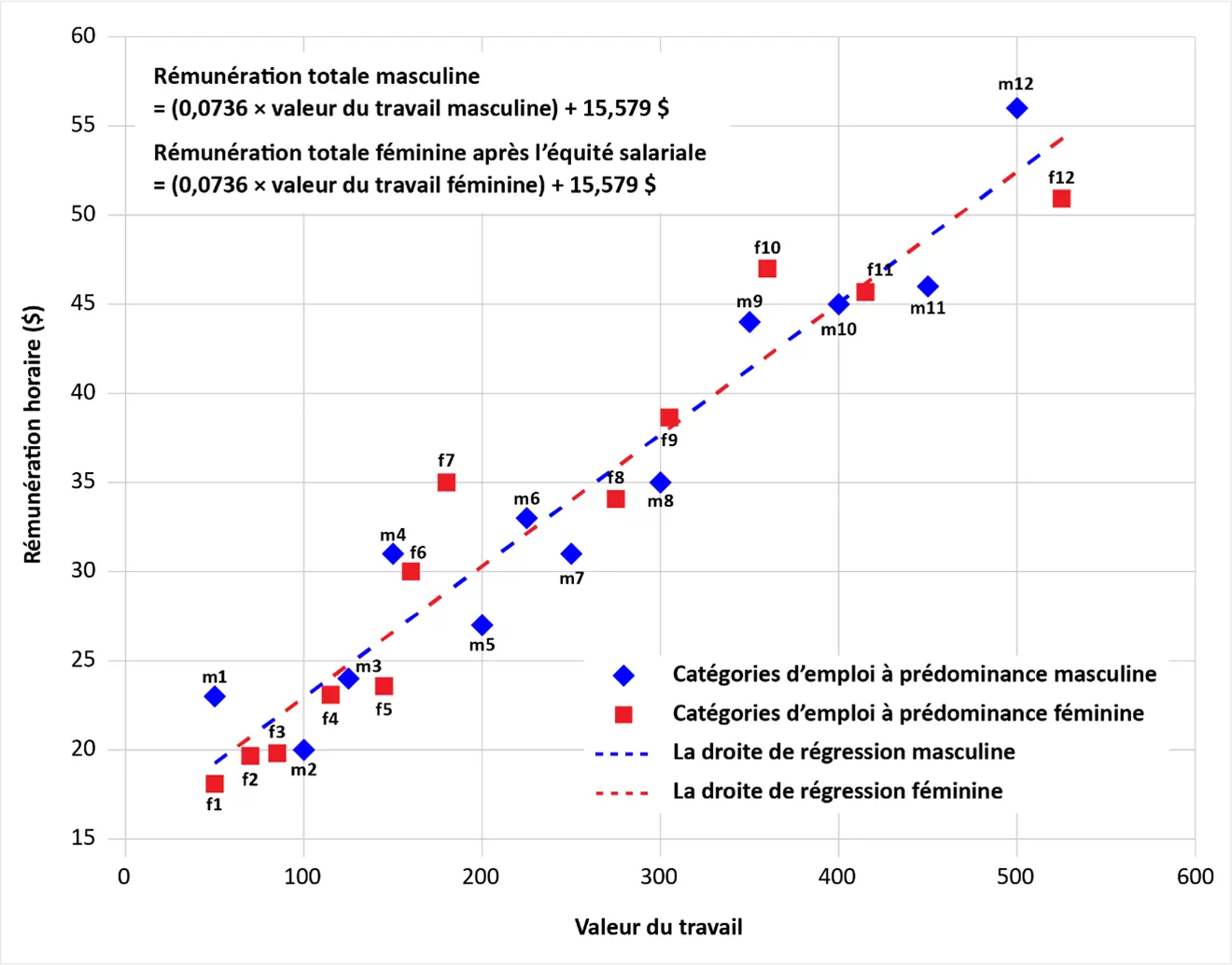 La méthode de la droite égale utilise des droites de régression pour comparer la rémunération totale des catégories